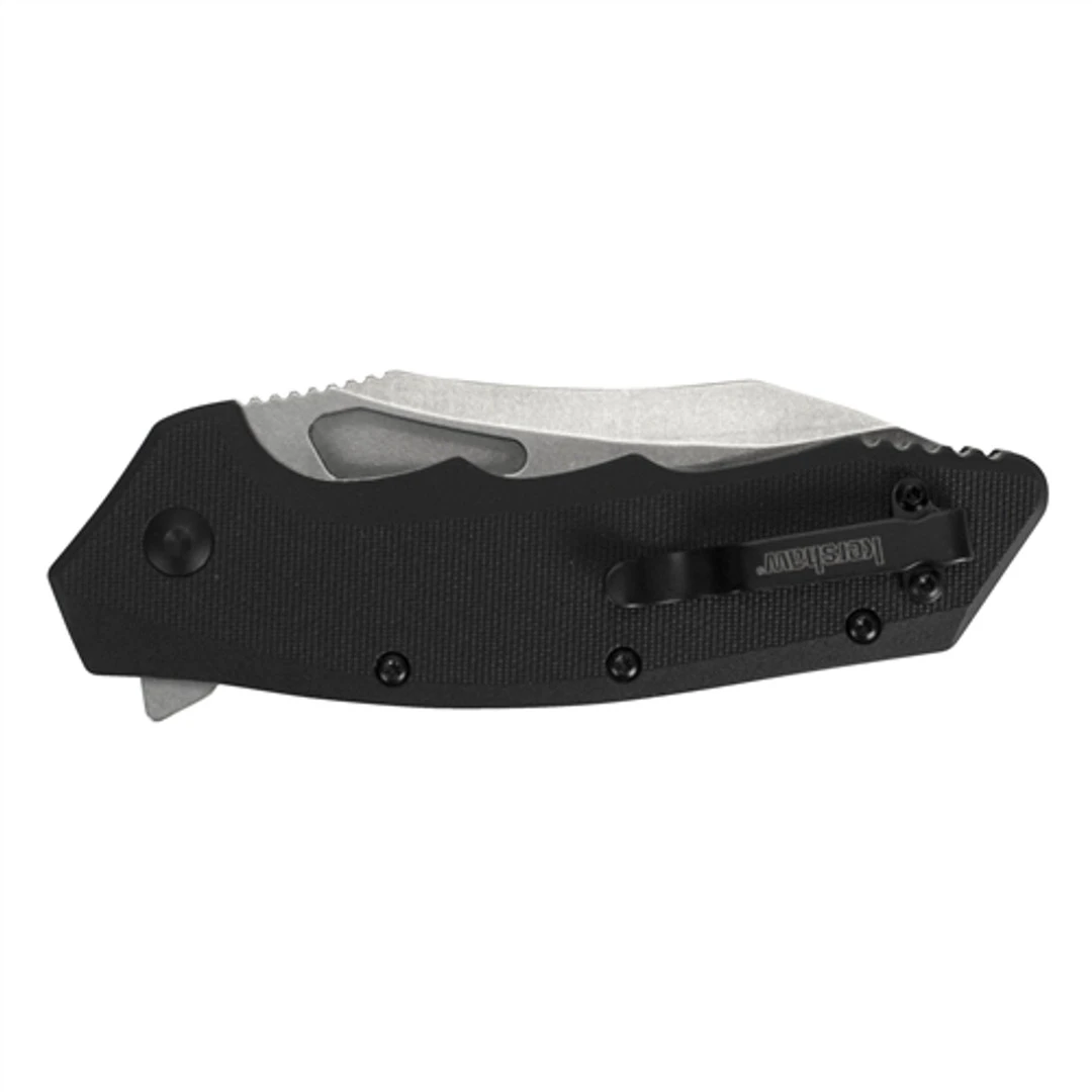 The Flitch is one of many new spring assisted models released by Kershaw this year. This liner lock designed model features Kershaw’s patented SpeedSafe system which quickly deploys the blade via the ambidextrous flipper function. Each knife features a stainless steel blade that not only incorporates a top swedge, but thumb jimping for a secure grip in the forward position and the utilization of the jimping platform on the under-belly of the handle equates to a useful reverse grip. This model, the 3930, features a black GFN (Glass Filled Nylon) handle, stainless steel liners, a modified drop point style blade in a stonewash finish and the reversible pocket clip is designed for tip up carry only but is eligible for a left or right hand carry option.