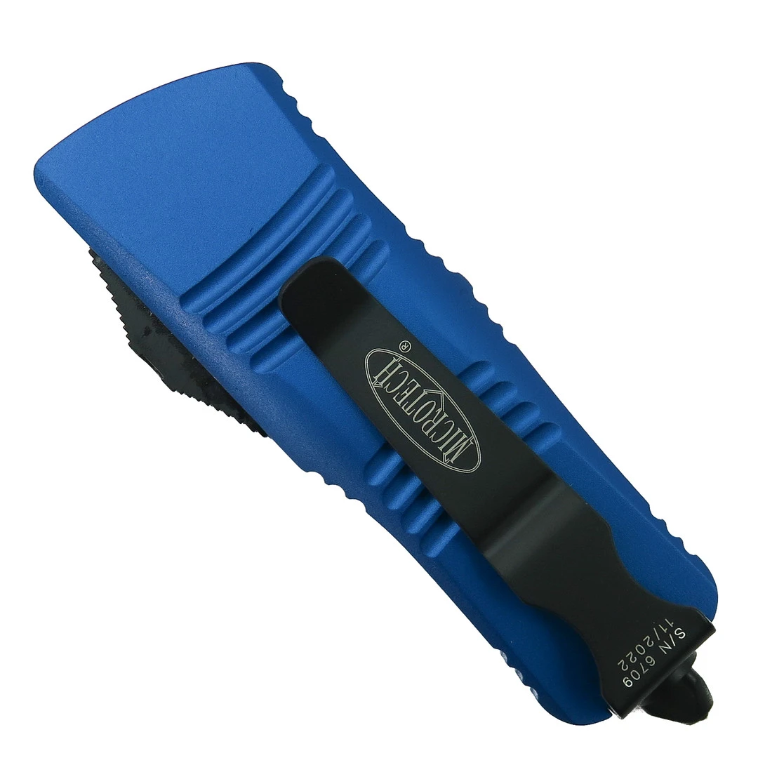 Microtech Blue Mini Troodon CA Legal OTF Auto Knife, Black Tanto Blade