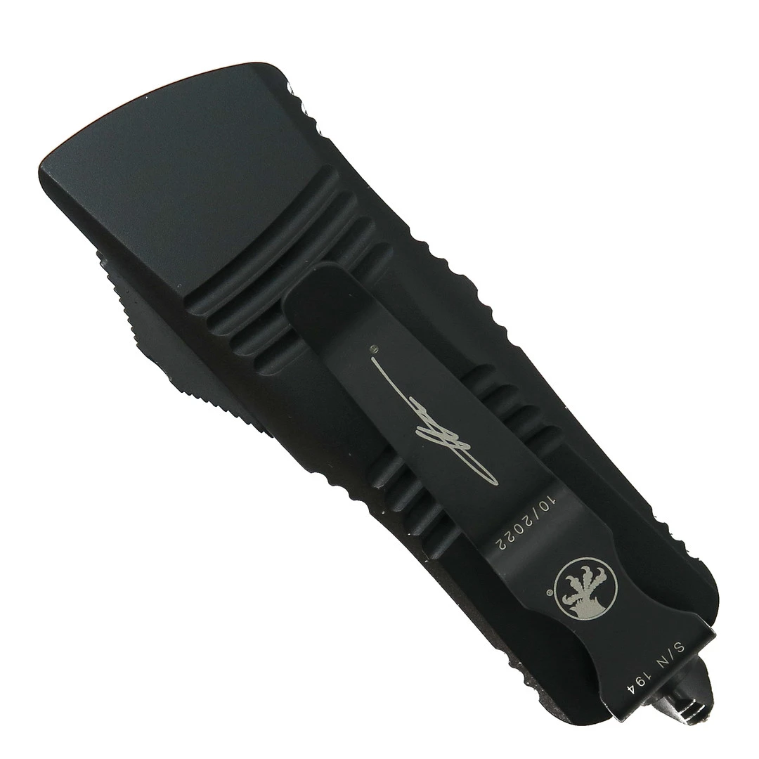 Microtech Signature Series Carbon Fiber Mini Troodon CA Legal OTF Auto Knife, Damascus Blade