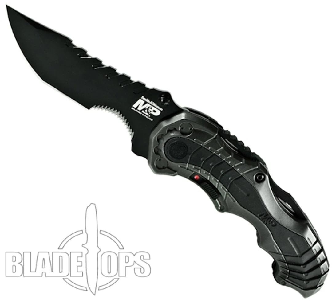 Smith & Wesson Grey MAGIC SWMP6S Spring Assist Knife, Black Part Serrated Blade