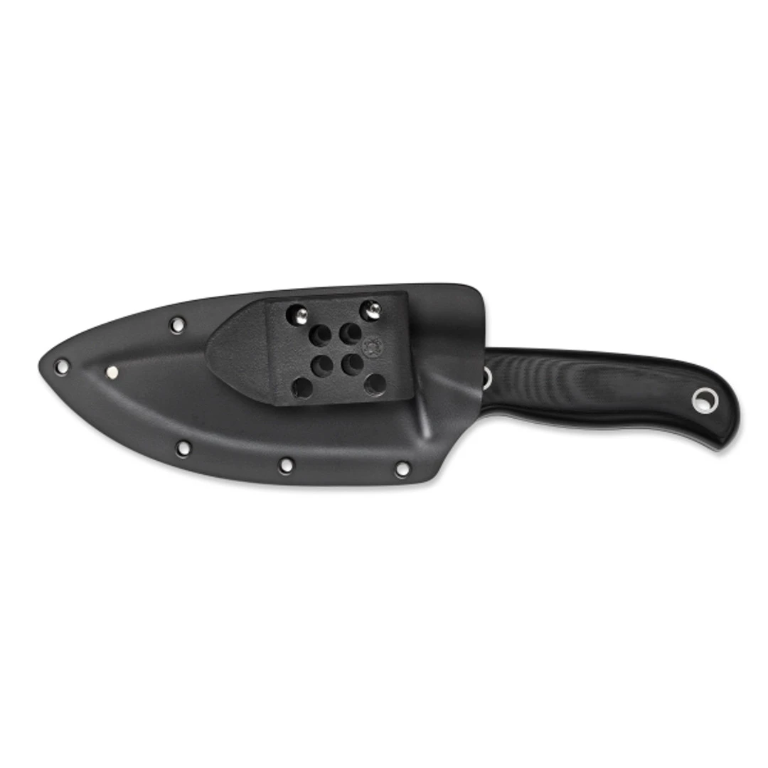 The Spyderco Bradley Bowie is a precision ground Bowie knife. Built from PSF27 which is an incredibly tough spray formed tool steel, this full flat ground blade has a pronounced belly for precise cutting control. The long straight swedge gives it the classic Bowie appearance. Gracefully contoured G10 scales complement the full tang blade. A lanyard hole allows for extra blade security. The Bradley Bowie comes with a custom molded Boltaron sheath and the versatile G-Clip attachment.