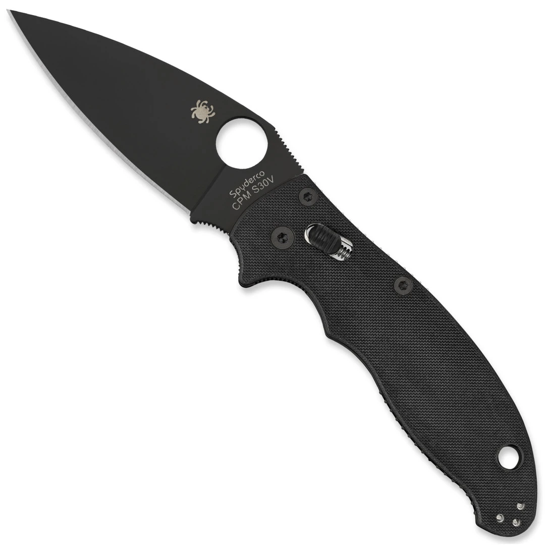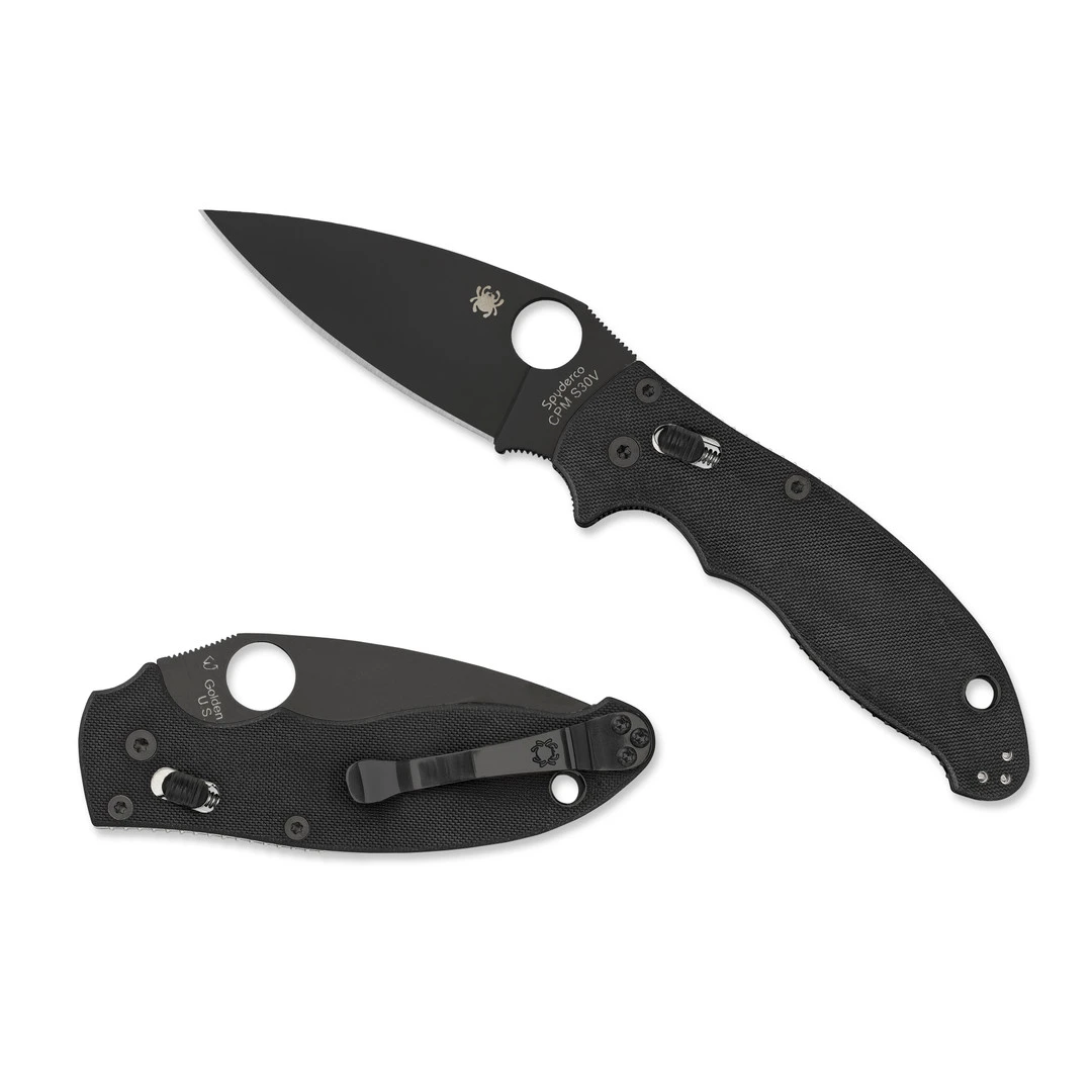 The Manix 2 is a dependable full-service knife that showcases Spydero’s USA-made quality while utilizing its patented Ball Bearing Lock mechanism. Considered one the their toughest locking mechanisms, it consists of a hardened steel ball bearing encased in a polymer cage. After the blade has been opened, a quick simultaneous pull back on the oval-shaped ridged tabs releases the lock and allows the blade to pivot smoothly closed. Just like the Endura or Delica series, the tremendous popularity inspired a number of variations to highlight different aspects of the knife–from lighter handle scales to alternate blade finishes and styles and even touching upon multiple size ranges. This model features black textured G-10 handle scales with strategically placed jimping and a DLC (Diamond Like Carbon) black finished blade in a leaf shape style. This folder also comes standard with Spyderco’s trademark round hole opening feature and the pocket clip is designed for tip up carry only but is eligible for left or right hand carry options. Made in the USA.
